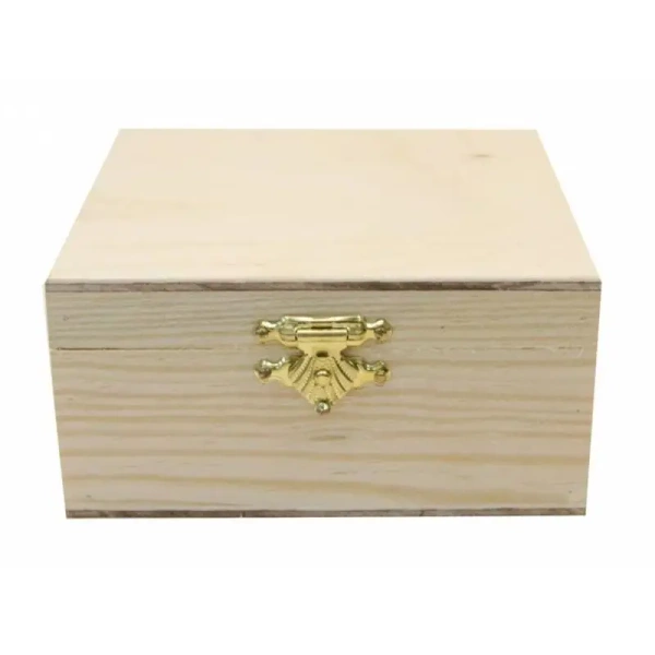 Pudełko drewniane z zamkiem, wykonane ze sklejki. Cięte laserowo, co daje wysoką precyzję kształtu. Idealne do techniki decoupage, także techniki malarskiej, wykonywania efektów spękań bądź efektów 3D za pomocą past strukturalnych. Stanowi surową bazę pod unikatowe elementy dekoracyjne w charakterze użytkowym, prezentowym lub świątecznym.