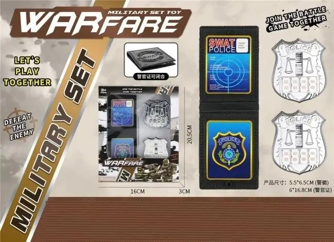 Przenieś się w świat akcji i strategicznych rozgrywek z naszym Zestawem Policyjnym "Warfare"! Ten fantastyczny zestaw to idealna propozycja dla młodych adeptów wojskowości i fanów policyjnych akcji. Otwórz pudełko i przygotuj się na niezapomniane misje, w których będziesz mógł wcielić się w rolę członka elitarnej jednostki SWAT lub dzielnego policjanta. W zestawie znajdziesz dwie imponujące odznaki: jedną z napisem "SWAT POLICE" oraz drugą z klasycznym symbolem "POLICE". Te szczegółowo wykonane odznaki dodadzą realizmu każdej zabawie i pozwolą poczuć się jak prawdziwy stróż prawa. Zestaw "Warfare" to nie tylko świetna zabawa w pojedynkę, ale przede wszystkim doskonała okazja do wspólnych gier z przyjaciółmi i rodziną. Zachęca do kreatywności, rozwija wyobraźnię i uczy pracy zespołowej. Hasło "LET'S PLAY TOGETHER" mówi samo za siebie - czas zjednoczyć siły i wspólnie stawić czoła wyzwaniom! Kompaktowe wymiary opakowania sprawiają, że zestaw jest łatwy do przechowywania i transportowania. Produkt przeznaczony jest dla dzieci powyżej 3 roku życia. Główne cechy produktu: Zawiera odznakę "SWAT POLICE" i odznakę "POLICE". Idealny do zabawy w pojedynkę i w grupie. Rozwija wyobraźnię i kreatywność. Zachęca do interakcji społecznych i pracy zespołowej. Przeznaczony dla dzieci powyżej 3 lat. Nie czekaj! Wyposaż swojego małego bohatera w Zestaw Militarny "Warfare" i pozwól mu wkroczyć do świata pełnego akcji i przygód! "DEFEAT THE ENEMY" - czas pokonać przeciwników i stać się bohaterem każdej zabawy! "JOIN THE BATTLE GAME TOGETHER" - wspólna zabawa to najlepsza zabawa!