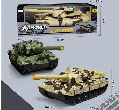 Pancerny Czołg Super Power - Poczuj Moc na Polu Bitwy! Przenieś się w fascynujący świat militariów z naszym pancernym czołgiem Super Power! Ta wspaniała zabawka została zaprojektowana z dbałością o detale, aby zapewnić młodym strategom niezapomniane chwile pełne akcji i kreatywnej zabawy. Realistyczny wygląd czołgu, z jego charakterystyczną sylwetką i detalami, pobudzi wyobraźnię każdego dziecka. Czołg wyposażony jest w efekty świetlne, które dodają zabawie jeszcze więcej emocji. Świecące elementy sprawią, że każda misja stanie się bardziej realistyczna i ekscytująca, zwłaszcza podczas zabawy w słabym oświetleniu. Dodatkowo, zabawka generuje efekty dźwiękowe, które imitują odgłosy prawdziwego pojazdu wojskowego, potęgując wrażenia z zabawy. Nasz pancerny czołg Super Power dostępny jest w dwóch atrakcyjnych wzorach kamuflażu, dzięki czemu każde dziecko może wybrać swój ulubiony wariant lub zebrać oba, by urozmaicić swoje wojskowe przygody. Solidna konstrukcja zapewnia trwałość zabawki, nawet podczas najbardziej dynamicznych akcji. Zabawka jest idealna dla dzieci powyżej 3 roku życia. Jej wymiary zostały starannie przemyślane, aby zapewnić komfortową i bezpieczną zabawę. Podaruj swojemu dziecku pancerny czołg Super Power i obserwuj, jak rozwija swoje umiejętności strategiczne i kreatywność poprzez wciągającą zabawę! To doskonały pomysł na prezent, który zapewni wiele godzin fantastycznej rozrywki.