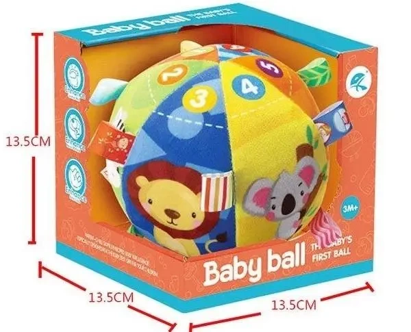 Miękka Sensoryczna Piłeczka dla Niemowląt - Odkryj Świat Zabawy i Rozwoju! Przedstawiamy uroczą i wszechstronną miękką piłeczkę sensoryczną, zaprojektowaną specjalnie z myślą o najmłodszych odkrywcach (od 3. miesiąca życia). Ta kolorowa i interaktywna zabawka to doskonały sposób na stymulowanie zmysłów Twojego dziecka poprzez dotyk, wzrok i słuch. Każdy fragment piłeczki wykonany jest z różnych, przyjemnych w dotyku materiałów o zróżnicowanych fakturach, co zachęca maluszka do eksploracji i rozwijania zdolności manualnych. Żywe kolory i kontrastujące wzory przyciągają wzrok dziecka, wspierając rozwój percepcji wizualnej. Na poszczególnych panelach piłeczki znajdują się duże, czytelne cyferki (od 1 do 5) oraz wesołe ilustracje sympatycznych zwierzątek: lwa i koali. Te elementy nie tylko uatrakcyjniają zabawę, ale także wprowadzają pierwsze pojęcia liczbowe i rozpoznawanie zwierząt. Dodatkowo, wszyte metki o różnych kształtach i teksturach zapewniają dodatkową stymulację sensoryczną i ćwiczą chwytność małych rączek. Ta miękka piłeczka jest lekka i bezpieczna dla niemowląt. Jej optymalny rozmiar (opakowanie 13.5cm x 13.5cm x 13.5cm) sprawia, że jest łatwa do chwytania i turlania, co rozwija koordynację wzrokowo-ruchową. Może towarzyszyć dziecku zarówno w domu, jak i podczas podróży. Zalety produktu: Stymulacja sensoryczna: Różnorodne tekstury i materiały rozwijają zmysł dotyku. Rozwój wzroku: Żywe kolory i kontrastujące wzory przyciągają uwagę. Wspieranie motoryki: Zachęca do chwytania, turlania i manipulowania. Pierwsze liczby i zwierzęta: Wprowadza podstawowe pojęcia w zabawny sposób. Bezpieczna i miękka: Idealna dla niemowląt od 3. miesiąca życia. Praktyczny rozmiar: Łatwa do trzymania i zabrania ze sobą. Podaruj swojemu dziecku tę wyjątkową piłeczkę sensoryczną, która łączy zabawę z edukacją i wspiera jego wszechstronny rozwój!