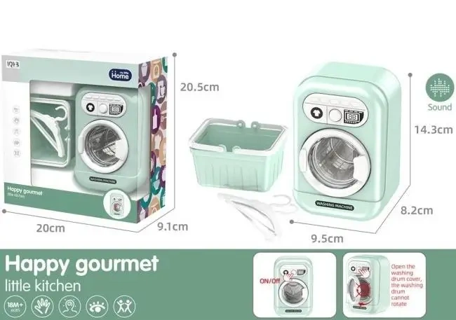 Interaktywna Pralka Zabawka "Happy Gourmet" - Małe AGD dla Wielkiej Zabawy! Przenieś świat dorosłych do krainy dziecięcej wyobraźni z naszą uroczą, miniaturową pralką zabawką z serii "Happy Gourmet"! Ten realistycznie wyglądający sprzęt AGD w pastelowym kolorze to doskonały sposób na rozwijanie kreatywności i umiejętności społecznych Twojego dziecka poprzez zabawę w dom. Nasza pralka została zaprojektowana z dbałością o detale. Posiada otwierane drzwiczki, dzięki czemu mali pomocnicy mogą wkładać i wyjmować "pranie". Dodatkowo, wbudowane efekty dźwiękowe uatrakcyjniają zabawę, imitując prawdziwą pracę pralki. Do zestawu dołączono praktyczne akcesoria: miniaturowy koszyk na pranie oraz dwa wieszaki, co czyni zabawę jeszcze bardziej realistyczną i angażującą. Kompaktowe wymiary pralki (9.5 cm szerokości, 8.2 cm głębokości i 14.3 cm wysokości) sprawiają, że idealnie pasuje do małych rączek i nie zajmuje dużo miejsca. Zabawka jest zasilana bateriami (brak w zestawie), co zapewnia bezpieczną i nieograniczoną zabawę w każdym miejscu. Cechy produktu: Realistyczny wygląd i pastelowa kolorystyka. Otwierane drzwiczki pralki. Wbudowane efekty dźwiękowe. Dołączone akcesoria: 1 x koszyk na pranie, 2 x wieszak. Kompaktowe wymiary: 9.5 cm x 8.2 cm x 14.3 cm. Zasilanie: baterie (brak w zestawie). Zapakowana w estetyczne pudełko o wymiarach 20 cm x 9.1 cm x 20.5 cm. Rekomendowany wiek: 18 miesięcy + Podaruj swojemu dziecku radość z naśladowania codziennych czynności i rozwijaj jego wyobraźnię z naszą interaktywną pralką zabawką "Happy Gourmet"! To doskonały prezent, który zapewni wiele godzin fascynującej zabawy.