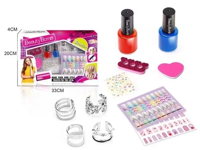 Odkryj świat kreatywnej zabawy z zestawem do zdobienia paznokci Beauty Bombs! Marzysz o wyjątkowych i olśniewających paznokciach, które przyciągną spojrzenia? Z naszym kompletnym zestawem do zdobienia paznokci Beauty Bombs to marzenie stanie się rzeczywistością! Ten fantastyczny zestaw został stworzony z myślą o młodych, kreatywnych osobach, które uwielbiają eksperymentować z własnym stylem. W eleganckim opakowaniu znajdziesz wszystko, co niezbędne do stworzenia niepowtarzalnych manicure: Dwa żywe kolory lakierów do paznokci: Czerwony i niebieski, które możesz stosować oddzielnie lub łączyć, tworząc ciekawe efekty. Mnóstwo różnorodnych ozdób: Błyszczące elementy i koraliki, które dodadzą Twoim paznokciom blasku i oryginalności. Arkusz z naklejkami na paznokcie: Wiele wzorów i motywów, od delikatnych kwiatków po modne grafiki, które pozwolą Ci w prosty sposób ozdobić każdy paznokieć. Wygodne separatory do palców: Ułatwią precyzyjne malowanie paznokci bez ryzyka rozmazania. Uroczy pilniczek w kształcie serca: Nie tylko praktyczny, ale również stylowy dodatek do Twojego zestawu. Zestaw Beauty Bombs to nie tylko świetna zabawa, ale także doskonały sposób na rozwijanie kreatywności i zdolności manualnych. Bezpieczne i łatwe w użyciu produkty sprawią, że każda stylizacja będzie udana. To idealny pomysł na prezent dla każdej młodej fanki modnych paznokci! Cechy produktu: Kompletny zestaw do tworzenia unikalnych stylizacji paznokci. Zawiera dwa lakiery w popularnych kolorach, ozdoby, naklejki, separatory i pilniczek. Bezpieczny i łatwy w użyciu. Idealny dla dzieci i młodzieży (rekomendowany wiek 3+). Świetny pomysł na prezent. Rozbudź swoją wyobraźnię i stwórz własne, niepowtarzalne wzory na paznokciach z zestawem Beauty Bombs! Dodaj go do koszyka już dziś!