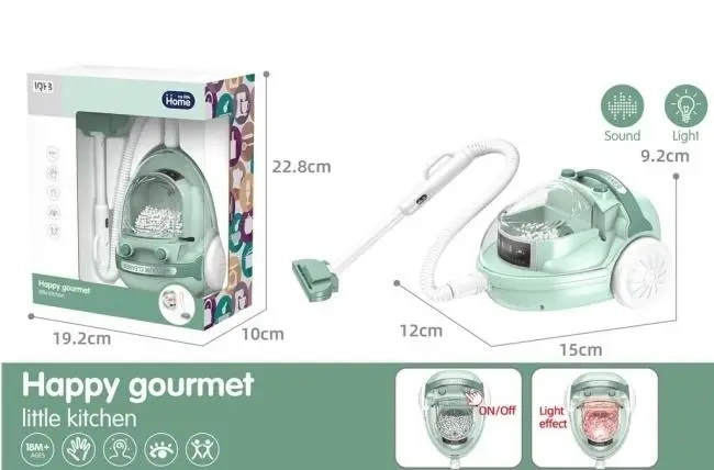 Interaktywny odkurzacz dla dzieci "Happy gourmet" - Mały pomocnik w sprzątaniu Zapewnij swojemu dziecku wspaniałą zabawę i rozwijaj jego wyobraźnię dzięki interaktywnemu odkurzaczowi "Happy gourmet"! Ten uroczy, zabawkowy odkurzacz został zaprojektowany z myślą o najmłodszych, oferując realistyczne efekty dźwiękowe i świetlne, które sprawią, że zabawa w dom stanie się jeszcze bardziej wciągająca. Dziecięcy odkurzacz "Happy gourmet" to doskonała propozycja dla małych miłośników porządku i naśladowców dorosłych. Wyposażony w wąż z końcówką oraz przezroczysty pojemnik na "śmieci" z kolorowymi kuleczkami, które wirują podczas zabawy, wiernie imituje działanie prawdziwego odkurzacza. Dodatkowo, wbudowane efekty dźwiękowe naśladujące odgłos odkurzania oraz świecąca dioda dodają realizmu i jeszcze bardziej angażują malucha. Kompaktowe wymiary zabawki (długość 15 cm, wysokość 9.2 cm, szerokość 12 cm) są idealnie dopasowane do małych rączek, a lekka konstrukcja ułatwia przenoszenie i manewrowanie. Odkurzacz posiada wygodny uchwyt oraz duże kółka, dzięki czemu dziecko może z łatwością "sprzątać" różne powierzchnie. Zabawka zasilana jest bateriami (brak w zestawie), co zapewnia bezpieczeństwo podczas zabawy. Estetyczne opakowanie sprawia, że odkurzacz "Happy gourmet" doskonale sprawdzi się jako prezent dla dzieci powyżej 18 miesiąca życia. Główne cechy produktu: Realistyczne efekty dźwiękowe odkurzania. Świecąca dioda "light effect". Przezroczysty pojemnik z wirującymi kuleczkami imitującymi zbieranie śmieci. Wąż z ergonomiczną końcówką. Wygodny uchwyt do przenoszenia. Kompaktowe wymiary dostosowane do małych dzieci. Lekka i bezpieczna konstrukcja. Zasilanie bateriami (brak w zestawie). Idealny dla dzieci powyżej 18 miesiąca życia. Podaruj swojemu dziecku mnóstwo radości i kreatywnej zabawy z interaktywnym odkurzaczem "Happy gourmet"! To nie tylko świetna zabawka, ale również sposób na rozwijanie wyobraźni i koordynacji ruchowej.