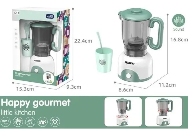 Happy Gourmet Little Kitchen Juicer - Rozbudź kulinarną wyobraźnię Twojego dziecka! Przedstawiamy interaktywny zabawkowy blender z serii Happy Gourmet Little Kitchen, który przeniesie Twoje dziecko w fascynujący świat przygotowywania pysznych napojów. Ten realistycznie wyglądający blender nie tylko zachęca do kreatywnej zabawy w kuchni, ale również rozwija zdolności manualne i wyobraźnię. Dzięki efektom dźwiękowym imitującym prawdziwe urządzenie, zabawa staje się jeszcze bardziej wciągająca i realistyczna. Dziecko może poczuć się jak prawdziwy barman przygotowujący orzeźwiające koktajle. W zestawie znajduje się blender oraz uroczy kubeczek z napisem "FRESH" i grafiką owoców, idealny do serwowania wymyślonych napojów. Kompaktowe wymiary sprawiają, że zabawka nie zajmuje dużo miejsca i łatwo ją przechowywać. Zabawka jest bezpieczna i wykonana z trwałych materiałów, idealna dla dzieci powyżej 18 miesiąca życia. To doskonały pomysł na prezent, który zapewni wiele godzin kreatywnej i edukacyjnej zabawy. Główne cechy: Realistyczny wygląd zabawkowego blendera. Efekty dźwiękowe uatrakcyjniające zabawę. W zestawie blender i kubeczek. Bezpieczne i trwałe materiały. Idealny dla dzieci powyżej 18 miesiąca życia. Rozwija wyobraźnię i zdolności manualne. Podaruj swojemu dziecku radość z odkrywania świata kuchni z Happy Gourmet Little Kitchen Juicer!
