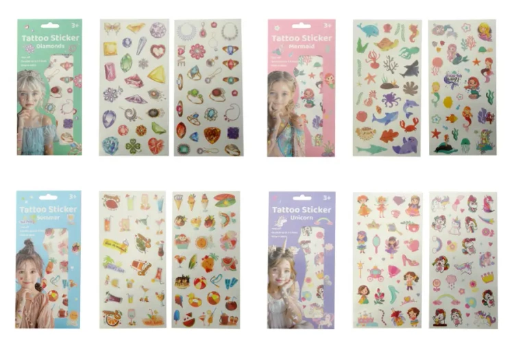 Tatuaże dla dzieci to tymczasowe, bezpieczne ozdoby naklejane na skórę. Są popularne na urodzinach. Te kolorowe tatuaże mają różne motywy: syrenki czy owoców i akcesoriów letnich. Produkt występuje w kilku wersjach kolorystycznych, wybierany losowo. Cena dotyczy jednej sztuki. Podane wymiary są wymiarami opakowania.