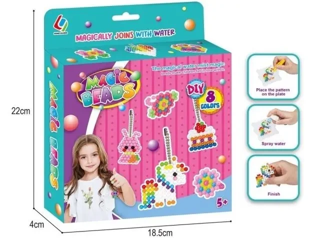 Odkryj fascynujący świat kreatywności z Magicznymi Koralikami! Ten wspaniały zestaw DIY to idealna propozycja dla dzieci w wieku powyżej 5 lat, które uwielbiają tworzyć i eksperymentować. Zasada działania jest niezwykle prosta i zarazem magiczna - wystarczy ułożyć kolorowe koraliki na dołączonym szablonie, tworząc wybrany wzór. Następnie spryskaj ułożoną kompozycję wodą, a koraliki pod wpływem wilgoci w magiczny sposób połączą się, tworząc trwałą i efektowną ozdobę. Zestaw zawiera aż 8 żywych i nasyconych kolorów koralików, co daje nieograniczone możliwości tworzenia różnorodnych projektów. Dzięki dołączonym inspiracjom i własnej wyobraźni, dzieci mogą tworzyć urocze breloczki, kolorowe obrazki i wiele innych unikalnych dzieł sztuki. To doskonały sposób na rozwijanie kreatywności, zdolności manualnych, koordynacji wzrokowo-ruchowej oraz cierpliwości. Magiczne Koraliki to nie tylko świetna zabawa, ale również wspaniały pomysł na prezent, który zapewni wiele godzin angażującej i rozwijającej rozrywki.