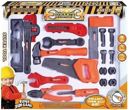 Super Zestaw Narzędziowy - Twój Mały Inżynier w Akcji! Marzy Ci się mały pomocnik, który z zapałem będzie Ci towarzyszył w drobnych naprawach? Z naszym Super Zestawem Narzędziowym to marzenie może się spełnić! Ten bogaty zestaw zawiera bezpieczne i realistycznie wyglądające narzędzia, idealnie dopasowane do małych rączek. W skład zestawu wchodzą między innymi: klucz francuski, młotek, piła, kombinerki, śrubokręt, poziomica oraz śruby i nakrętki. Każde narzędzie wykonane jest z trwałego i bezpiecznego plastiku, co gwarantuje długą i beztroską zabawę. Zabawa z tym zestawem to nie tylko świetna rozrywka, ale również doskonały sposób na rozwijanie motoryki małej, koordynacji wzrokowo-ruchowej oraz logicznego myślenia. Dziecko, naśladując dorosłych, uczy się rozwiązywać problemy i rozwija swoją kreatywność. Zestaw przeznaczony jest dla dzieci powyżej 3 roku życia. To doskonały pomysł na prezent, który zapewni wiele godzin fascynującej i edukacyjnej zabawy. Pozwól swojemu dziecku poczuć się jak prawdziwy majsterkowicz!