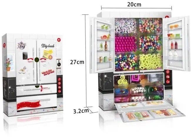 Odkryj świat kreatywnej zabawy z tą uroczą, miniaturową lodówką! Z zewnątrz przypomina prawdziwą chłodziarkę, ale jej wnętrze skrywa prawdziwe bogactwo inspiracji. Po otwarciu drzwi Twoje dziecko znajdzie mnóstwo kolorowych koralików o różnych kształtach i rozmiarach, miękką mulinę w wielu odcieniach oraz inne drobne akcesoria niezbędne do tworzenia unikalnych bransoletek, naszyjników i innych ozdób. Ta kompaktowa lodówka (20 cm szerokości, 27 cm wysokości i 3.2 cm głębokości) to nie tylko źródło kreatywnych materiałów, ale także praktyczny sposób na ich przechowywanie i organizację. Zabawa z nią rozwija wyobraźnię, zdolności manualne i cierpliwość. To idealny prezent dla małych artystów, którzy uwielbiają tworzyć własne, niepowtarzalne dzieła sztuki!