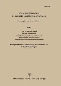 Mikrogeometrische Veränderungen der Oberfläche bei Kaltumformvorgängen - Otto Kienzle