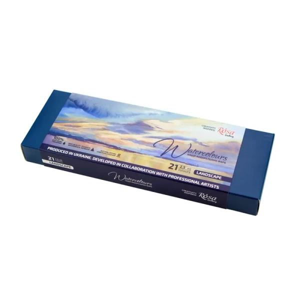 Farby akwarelowe w kostkach o pojemności 2,5 ml 21 farb w kolorystyce skomponowanej do tworzenia krajobrazów