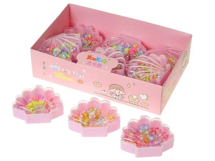 koraliki do nawlekania w pudełeczku-muszelce 9x8x3cm MIX