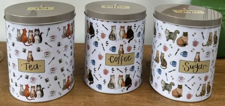 Zestaw puszek herbata kawa cukier 4 koty - Alex Clark