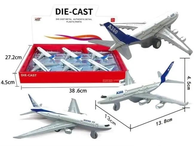 Metalowy Model Samolotu - Wyjątkowa Miniatura Największego Pasażerskiego Samolotu Świata! Z dumą prezentujemy metalowy model samolotu, wykonany z najwyższą precyzją, aby wiernie oddać wygląd i charakterystyczne cechy tego imponującego statku powietrznego. Ten szczegółowy model, wykonany metodą die-cast z trwałego metalu z dodatkiem elementów plastikowych, zachwyca solidnością i realistycznym wykończeniem. To doskonały przedmiot dla zapalonych kolekcjonerów, entuzjastów lotnictwa oraz jako inspirująca zabawka dla dzieci powyżej 3 roku życia, które fascynują się podniebnymi podróżami. Model charakteryzuje się dbałością o detale, co czyni go wierną repliką. Cechy produktu: Metalowy model samolotu. Wykonany metodą die-cast z metalu i elementów plastikowych. Precyzyjne odwzorowanie detali prawdziwego samolotu. Idealny dla kolekcjonerów i miłośników lotnictwa. Świetny pomysł na prezent. Produkt przeznaczony dla dzieci powyżej 3 roku życia. Dodaj ten wyjątkowy model samolotu do swojej kolekcji i ciesz się pięknem lotniczej inżynierii na co dzień!
