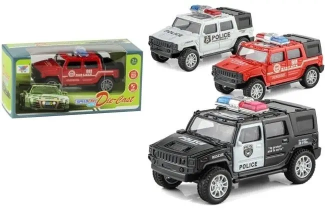 Wkrocz do świata służb mundurowych z tym szczegółowo wykonanym, metalowym pojazdem policyjnym typu SUV. Solidna konstrukcja die-cast gwarantuje trwałość i realistyczny wygląd. Dostępny w trzech kolorach: klasycznej bieli, dynamicznej czerwieni oraz eleganckiej czerni. Każdy z radiowozów posiada autentyczne oznaczenia policyjne i ruchome elementy, które urozmaicają zabawę. Realistyczne sygnały świetlne na dachu pojazdu dodają emocji podczas odgrywania policyjnych pościgów i interwencji. To doskonały wybór dla dzieci, które z pasją śledzą pracę policji i uwielbiają kreatywną zabawę. Zbierz je wszystkie i stwórz własną flotę policyjną!