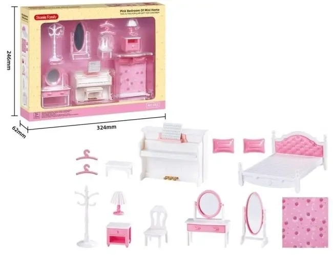 Zanurz się w świecie Sylvanian Families z tym uroczym zestawem różowej sypialni! Ten szczegółowy zestaw mebelków i akcesoriów pozwoli Twojemu dziecku stworzyć przytulną i stylową przestrzeń dla swoich ulubionych figurek. W zestawie znajdziesz wygodne łóżko z różowym zagłówkiem i pościelą w kropki, elegancką toaletkę z owalnym lustrem i szufladką, pianino z otwieraną klapą i stołeczkiem, a także lampkę nocną, wieszaki na ubrania i parawan. Wszystkie elementy utrzymane są w pastelowej kolorystyce z różowymi akcentami, co dodaje im dziewczęcego uroku. Zestaw pobudza wyobraźnię i zachęca do odgrywania różnorodnych scenek z życia codziennego. Idealny jako uzupełnienie istniejącego domku dla lalek lub jako samodzielny zestaw do zabawy. Zapakowany w estetyczne pudełko, doskonale sprawdzi się jako prezent dla małych miłośników Sylvanian Families.