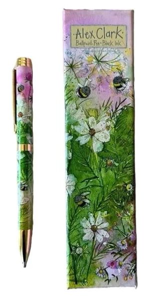 Przepiękny długopis z kolorowym wzorem Alex Clark. Łatwo obracana stalówka pozwala na płynne rozpoczęcie pisania. Posiada wkład z czarnym atramentem. Długopis wykończony jest złotem oraz zapakowany jest w ilustrowane, pasujące wzorem pudełko. Rozmiar długopisu: 140 mm x 10 mm.