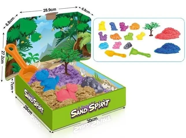 Odkryj fascynujący świat dinozaurów z zestawem do zabawy sensorycznej Sand Spirit! Ten wspaniały zestaw to nie tylko świetna zabawa, ale również doskonały sposób na rozwijanie kreatywności i zdolności manualnych Twojego dziecka. Magiczny piasek o unikalnej teksturze pozwala na łatwe formowanie i modelowanie, dając nieskończone możliwości tworzenia prehistorycznych scenariuszy. W zestawie znajdziesz różnokolorowy piasek, foremki przedstawiające różnorodne dinozaury, drzewko oraz praktyczne narzędzia, takie jak łopatka i grabki. Wszystko to umieszczone jest w poręcznym pojemniku, który jednocześnie służy jako piaskownica i ułatwia przechowywanie. Zabawa z piaskiem Sand Spirit pobudza wyobraźnię, zachęca do opowiadania historii i rozwija motorykę małą. Dzieci mogą tworzyć własne krajobrazy, budować gniazda dla dinozaurów i odgrywać ekscytujące przygody. Bezpieczny i nietoksyczny piasek jest łatwy do czyszczenia, co zapewnia komfort zarówno dzieciom, jak i rodzicom. Podaruj swojemu dziecku niezapomniane chwile kreatywnej zabawy i wprowadź je w fascynujący świat dinozaurów z zestawem Sand Spirit! Idealny prezent na każdą okazję.