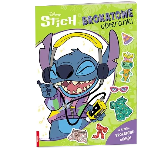 Kosmiteczki są w kropeczki. Chcesz się przekonać, jak Stich będzie wyglądał w przebraniu biedronki? A może chcesz zobaczyć, jak niebieski kosmita gra na ukulele, albo sprawdzić, w jakim stroju Stich skradnie serce Andzi? Sięgnij po brokatowe naklejki i daj się porwać tej fantastycznej, pełnej humoru zabawie!