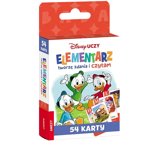 Karty stanowią doskonałe uzupełnienie Elementarza. Zestaw zawiera 51 kart z imionami, różnymi częściami zdania, literami oraz sylabami, a także 3 karty "jak się bawić". Zróżnicowanie kart stwarza mnóstwo możliwości nauki przez zabawę, podczas której dzieci będą: trenować składanie wyrazów z sylab, poznawać alfabet, ćwiczyć czytanie, budować słowa, tworzyć własne zdania. Innowacyjna formuła pozwala zarówno na samodzielną zabawę, jak i w gronie 2-4 osób, w dowolnym miejscu i czasie. Zawarte w zestawie pomysły na wesołe gry i zabawy z wykorzystaniem kart stymulują rozwój kompetencji językowych i ćwiczą koncentrację. Znane i lubiane przez dzieci postacie ze świata Disneya sprawią, że nauka będzie dla przedszkolaków świetną przygodą.