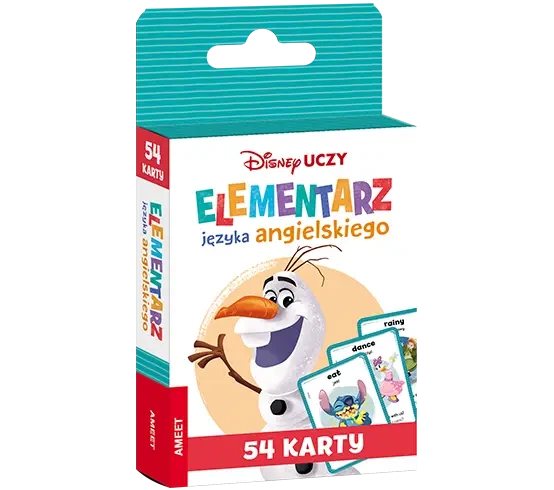 Karty stanowią doskonałe uzupełnienie Elementarza języka angielskiego. Zestaw zawiera 52 karty podzielone na grupy tematyczne, zawierające dany wyraz użyty w zadaniu oraz propozycje "jak się bawić". Zróżnicowanie kart stwarza mnóstwo możliwości nauki przez zabawę podczas której dzieci będą: poznawać nowe słówka i ich znaczenie ćwiczyć czytanie w języku angielskim tworzyć własne zdania zapamiętywać użycie słówka w zdaniu Innowacyjna formuła pozwala zarówno na samodzielną zabawę, jak i w gronie 2-4 osób, w dowolnym miejscu i czasie. Zawarte w zestawie pomysły na wesołe gry i zabawy z wykorzystaniem kart dodatkowo stymulują rozwój kompetencji językowych i ćwiczą pamięć oraz koncentrację. Znane i lubiane przez dzieci postaci ze świata Disneya sprawią, że nauka będzie dla przedszkolaków świetną przygodą.