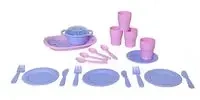Wysokiej jakości zestaw obiadowy Plasto dla 4 osób. Zawiera łącznie 23 części; talerze, kubki, sztućce, patelnię z pokrywką i tacę. Zalecany wiek 1+. Wyprodukowano w Finlandii.