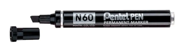 Prezentowany marker permanentny Pentel N60 odznacza się swoją uniwersalnością i trwałością. Został wyposażony w końcówkę o ściśle określonej szerokości 5,5 mm, co pozwala na osiągnięcie precyzyjnej i jednorodnej linii pisania. Jego główne cechy to: - szerokość linii pisania : dokładnie 5,5mm, co sprawia, że pisząc tym markerem można w pełni kontrolować kształt i grubość linii, - Długość linii pisania: aż do 450 metrów, co pozwala na długotrwałe korzystanie z markera bez konieczności wymiany, - ilość zawartego tuszu: 9,5 gram, co znacznie wydłuża żywotność markera, - Kolor tuszu: czarny – klasyczny i uniwersalny kolor, który doskonale sprawdzi się w każdych warunkach. Jego głównym atutem jest możliwość zastosowania na różnych powierzchniach. Marker Pentel N60 idealnie nadaje się do pisania na metalu, szkle, plastiku, gumie a także na grubym papierze. Jest to idealne narzędzie dla każdego, kto szuka niezawodnego i wielofunkcyjnego markera, który sprawdzi się w różnorodnych zastosowaniach.EAN: 4902506071361