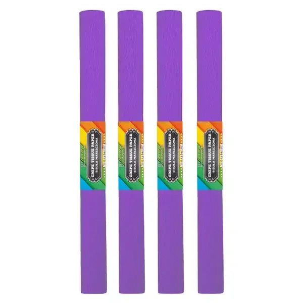 Bibuła marszczona, w kolorze purpurowym - niezbędna każdemu uczniowi na zajęciach plastycznych.