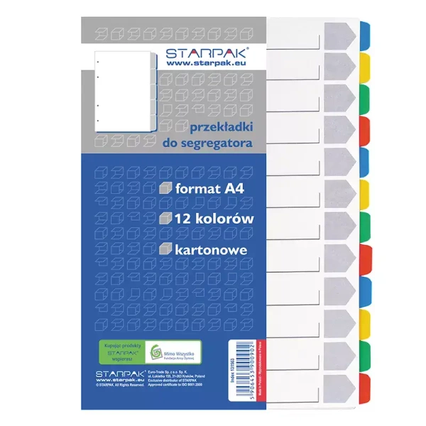 Przekładka A4 kartonowa, 12 kolorów