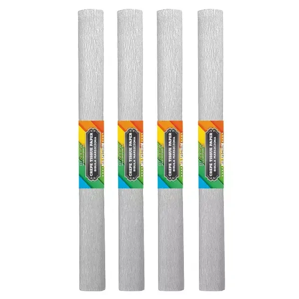 Bibuła marszczona w kolorze srebrnym - niezbędna każdemu uczniowi na zajęciach plastycznych.