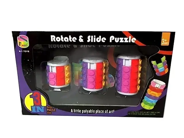Fantastyczna układanka logiczna w kształcie walca. Zabawa polega na uporządkowaniu kolorów w jednym rzędzie. Pierścienie można swobodnie obracać, przekładając przy tym kolorowe kostki. W jednym rzędzie jest wolne miejsce, które umożliwia ruch kostek.