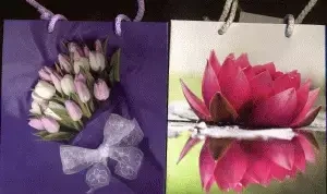 Torebka prezentowa ozdobiona motywem z kwiatami.