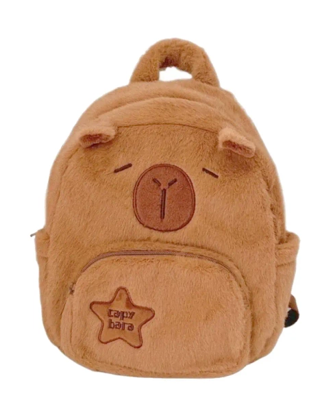 Plecak pluszowy w kształcie kapibary o wymiarach 28 x 25 x 11 cm. Miękki i przyjemny w dotyku, idealny dla dzieci i miłośników uroczych akcesoriów. Posiada regulowane szelki i praktyczną komorę na drobiazgi.