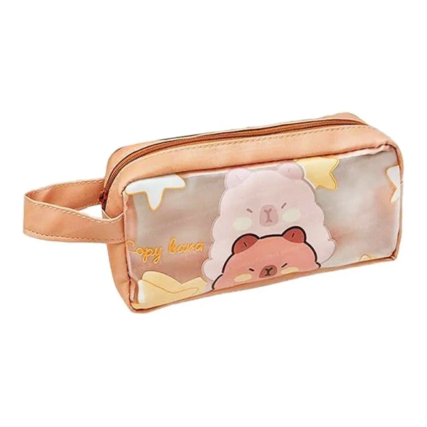 Transparentny piórnik z motywem kapibary o wymiarach 20 x 9,5 x 5 cm. Praktyczny i stylowy, idealny do przechowywania przyborów szkolnych i akcesoriów. Lekki i łatwy do czyszczenia.