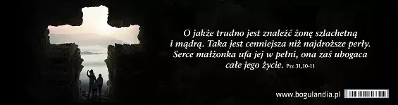 Tekst na zakładce: O jakże trudno jest znaleźć żonę szlachetną i mądrą. Taka jest cenniejsza niż najdroższe perły. Serce małżonka ufa jej w pełni, ona zaś ubogaca całe jego życie. (Prz 31,10-11)