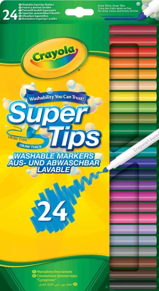 Zestaw zawiera 24 spieralne flamastry Super Tips, dzięki którym dziecko namaluje, co tylko zechce.