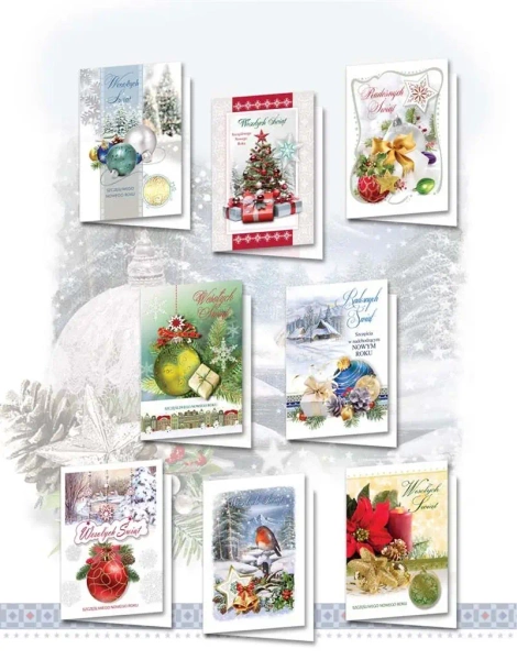 Karnet B6 ząbkowany na zewnątrz. Lakierowany ekologicznym lakierem dyspersyjnym. Pakowany do folii wraz z kopertą w miksie po 10 sztuk.