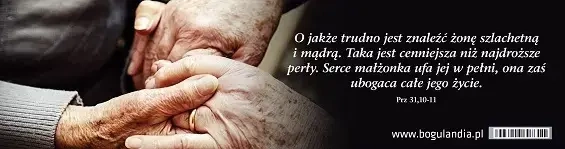 Tekst na zakładce: O jakże trudno jest znaleźć żonę szlachetną i mądrą. Taka jest cenniejsza niż najdroższe perły. Serce małżonka ufa jej w pełni, ona zaś ubogaca całe jego życie. (Prz 3,10-11)