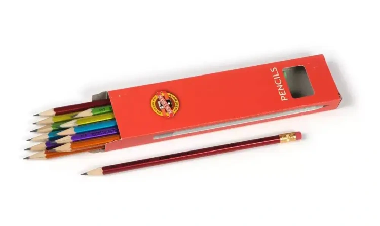 Szkolne ołówki z gumką, twardość HB, mix intensywnych kolorów.