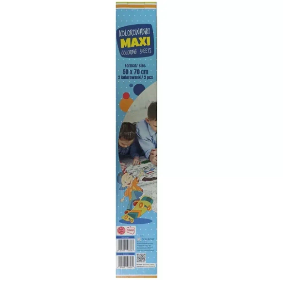 Wielkoformatowa kolorowanka wykonana z grubego, białego papieru. Możliwość pracy kilku osób jednocześnie. Profesjonalna grafika, wyraźny druk w kolorze czarnym. Rolowany bez zagnieceń. W tekturowej tubie chroniącej przed zniszczeniem. Odpowiedni do kolorowania kredkami, flamastrami, markerami i farbami.