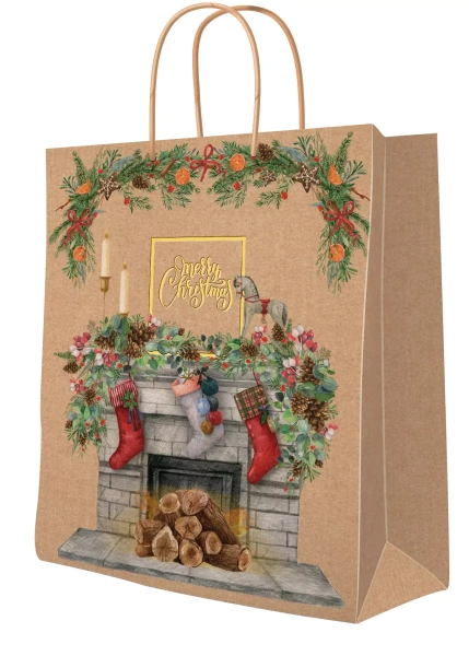 Torebka prezentowa Świąteczny kominek, duża