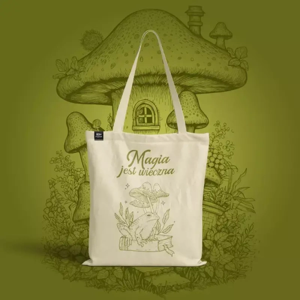 Zabierz żabę ze sobą! Pilnująca tajemnic magii, baczna obserwatorka prosto ze świata fantasy właśnie wskoczyła na naszą torbę, przynosząc ze sobą szczyptę tajemniczego świata i wzbogacając kolekcję książkomaniaków. Cytat użyty na torbie pochodzi z książki Cierń T. Kingfisher.