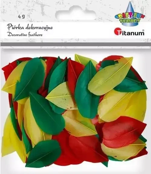 Piórka płatki 4 g mix kolorów: czerwone, zielone, żółte.