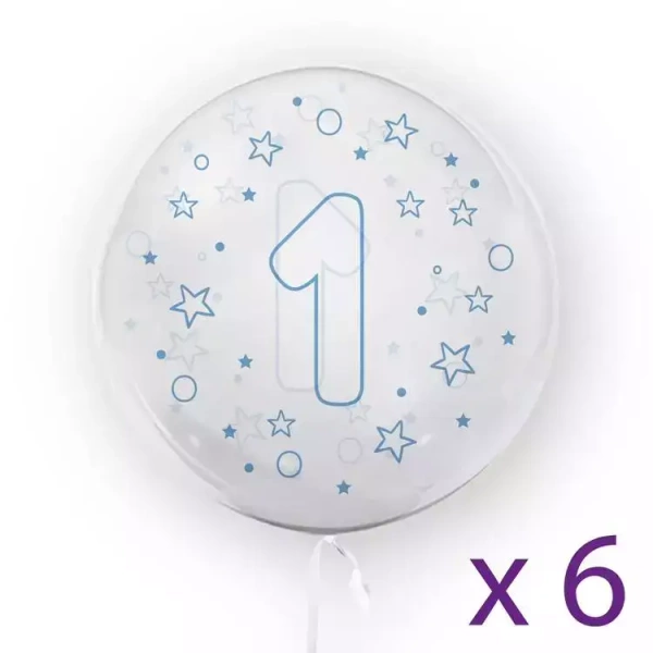 Balony z cyfrą "1" (6 sztuk), gwiazdki niebieskie