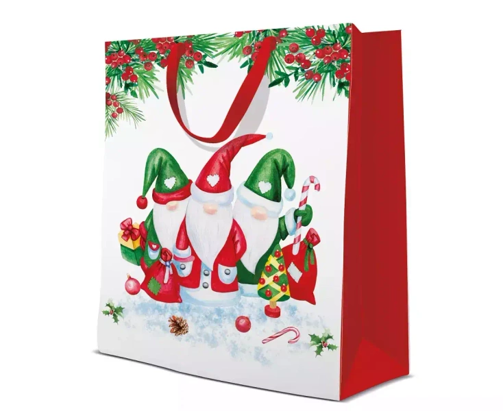 Torebka prezentowa „Świąteczne Skrzaty” o wymiarach: 30.0 x 41.0 x 12.0 cm.