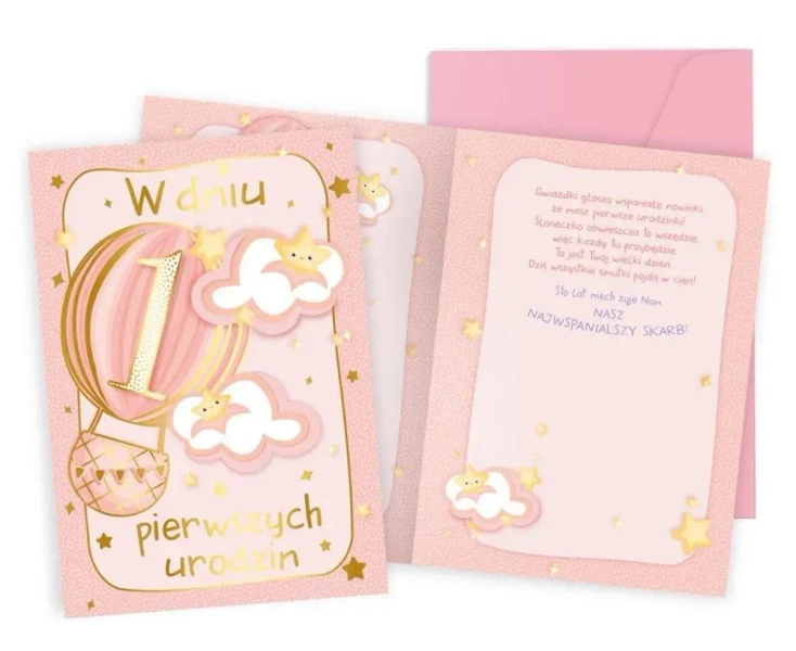 Karnet B6 na roczek, różowy balon