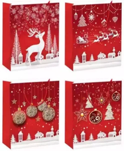 Torebka świąteczna w kolorze głębokiej czerwieni o wymiarach 18x23x10 cm.