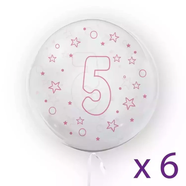 Balony z cyfrą "5" (6 sztuk), gwiazdki różowe