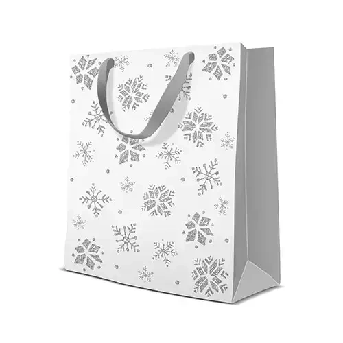 Torebka prezentowa „Płatki śniegu” o wymiarach: 20.0 x 10.0 x 25.0 cm.