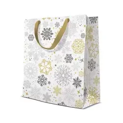 Torebka prezentowa Metaliczne śnieżynki, średnia