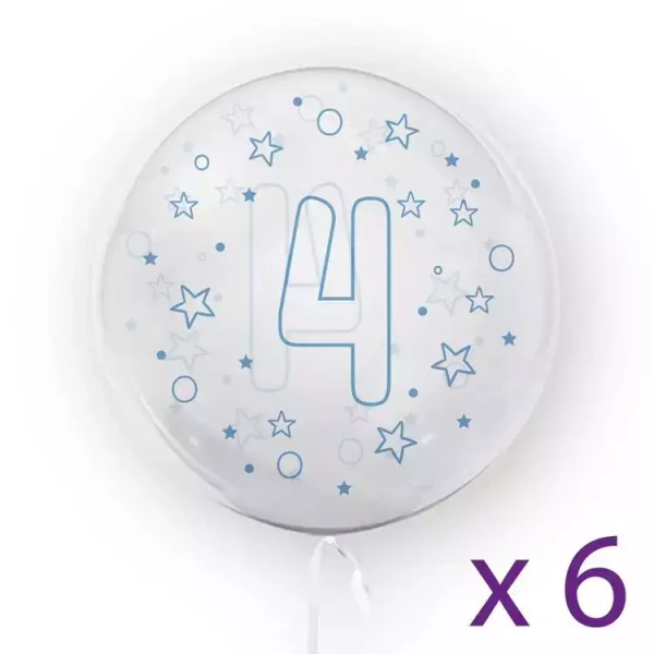 Balony z cyfrą "4" (6 sztuk), gwiazdki niebieskie